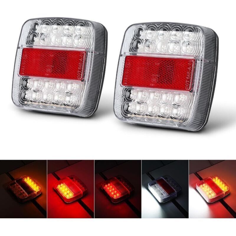 Feu arrière led multifonctionnel rouge, ambre et blanc, 2 pièces, pour remorque, camion, caravane, Van, bateau, lampe de plaque d'immatriculation,