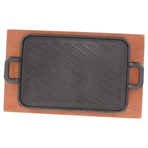 Assiette À Steak en Fonte, Plaque Chauffante Antiadhésive, Poêle Fajita, Assiette De Serveur avec Base en Bois, Assiette À Steak, Four À Pizza, Accessoires pour Barbecue