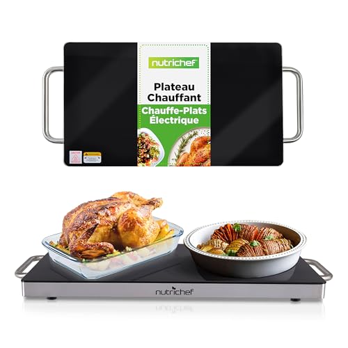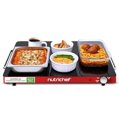 NutriChef Plaque Chauffante Électrique 54×42 cm – Température Réglable 60 à 110 °C, Surface Antiadhésive, Chauffe-Plats pour Buffet et Grillades