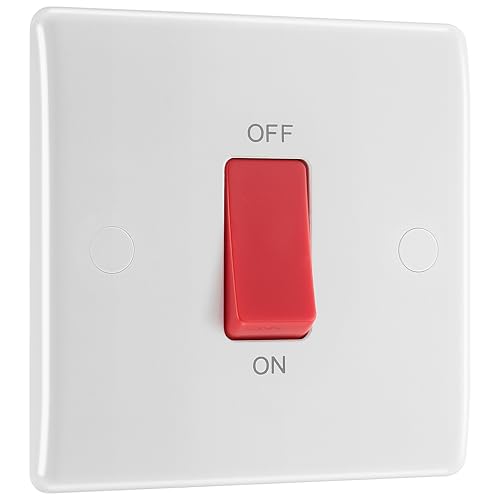 BG Interrupteur de Commande pour cuisinière électrique, Plaque Unique, Double pôle, Bord Rond, Nexus 800 Series, Blanc moulé, 45 A, 875