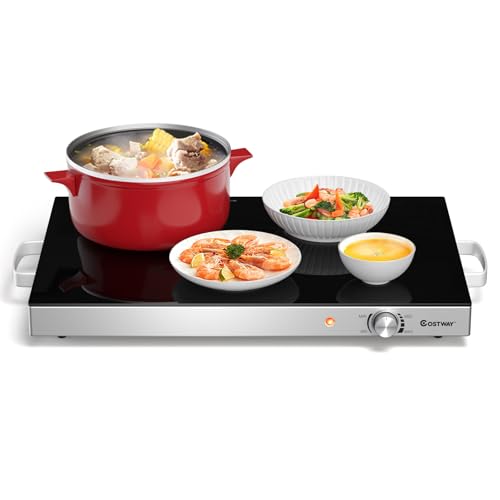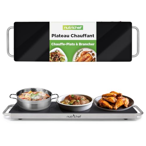 FANTASK Plaque chauffante électrique, chauffe-plats avec température réglable et poignées anti-brûlure, plaque chauffante portable pour fêtes, buffets, restauration