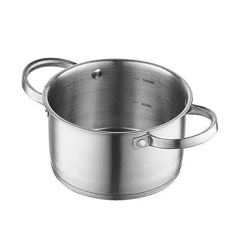 FLORINA Marmite en Acier Inoxydable (1,2 l) 14 cm I Marmite avec Couvercle en Verre I Fond à 3 Couches I Compatible Lave-Vaisselle I Idéale pour Plaque à Induction, Gazinière et Plaque Électrique