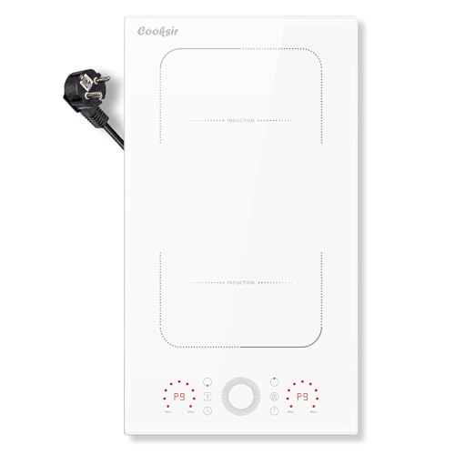 Cooksir Plaque Induction 2 Feux avec Prise, Plaque de Cuisson Deux Feux, 29cm, 3500W, Encastrable, Zone Combinée Flexible/ 220V-240V/ 9 Niveau de Puissance/Verrouillage de Sécurité