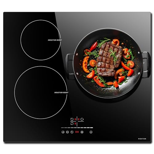 NOXTON Plaque Induction 3 Feux avec Flexizone, Plaque Eletrique 3 Foyers Encastrable, Table de Cuisson Induction 60 cm avec Curseur, Booster, Minuterie, Sécurité Enfant, 220V-240V, 6800W, Sans Prise