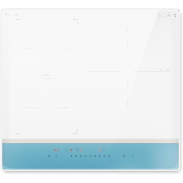 Karinear Plaque Induction Flexizone 3 Feux encastrable avec Verre Blanc et Panneau de Commande Bleu, Table de Cuisson 60 cm avec Booster, Minuterie, Sécurité Enfant, 220V-240V, 6800W sans prise