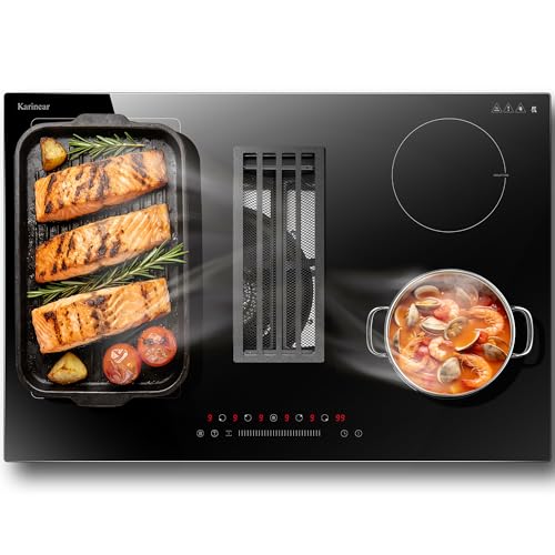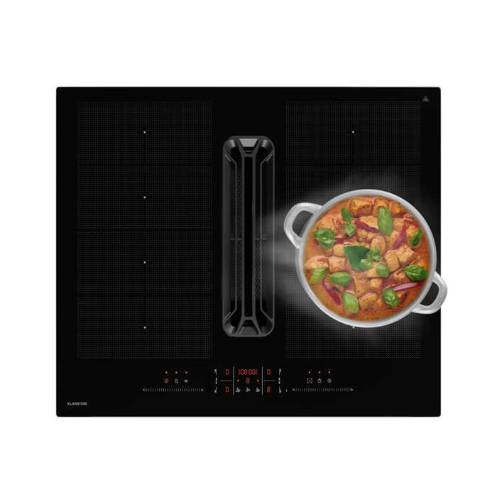 Plaque induction aspirante 83cm avec hotte intégrée 500m³h booster filtre à plasma noir aw834bbffbeh