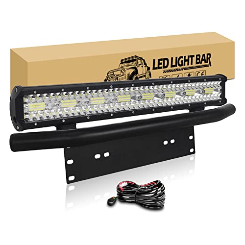 RIGIDON 51cm 20" 288W Led Light Barre avec 12V câblage kit, Support de Fixation de Plaque D'immatriculation, Support Pare-Chocs Avant Bar Barre Lumineuse LED pour Voiture 4X4 Camion Hors Route