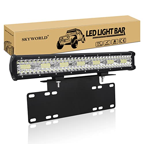 SKYWORLD 50 cm 288W Barre Led avec 12V faisceau de câblage et 58 cm support plaque immatriculation, Rampe led bar 4x4 Longue Portée Barre Lumineuse pour Voiture Camion Hors Route