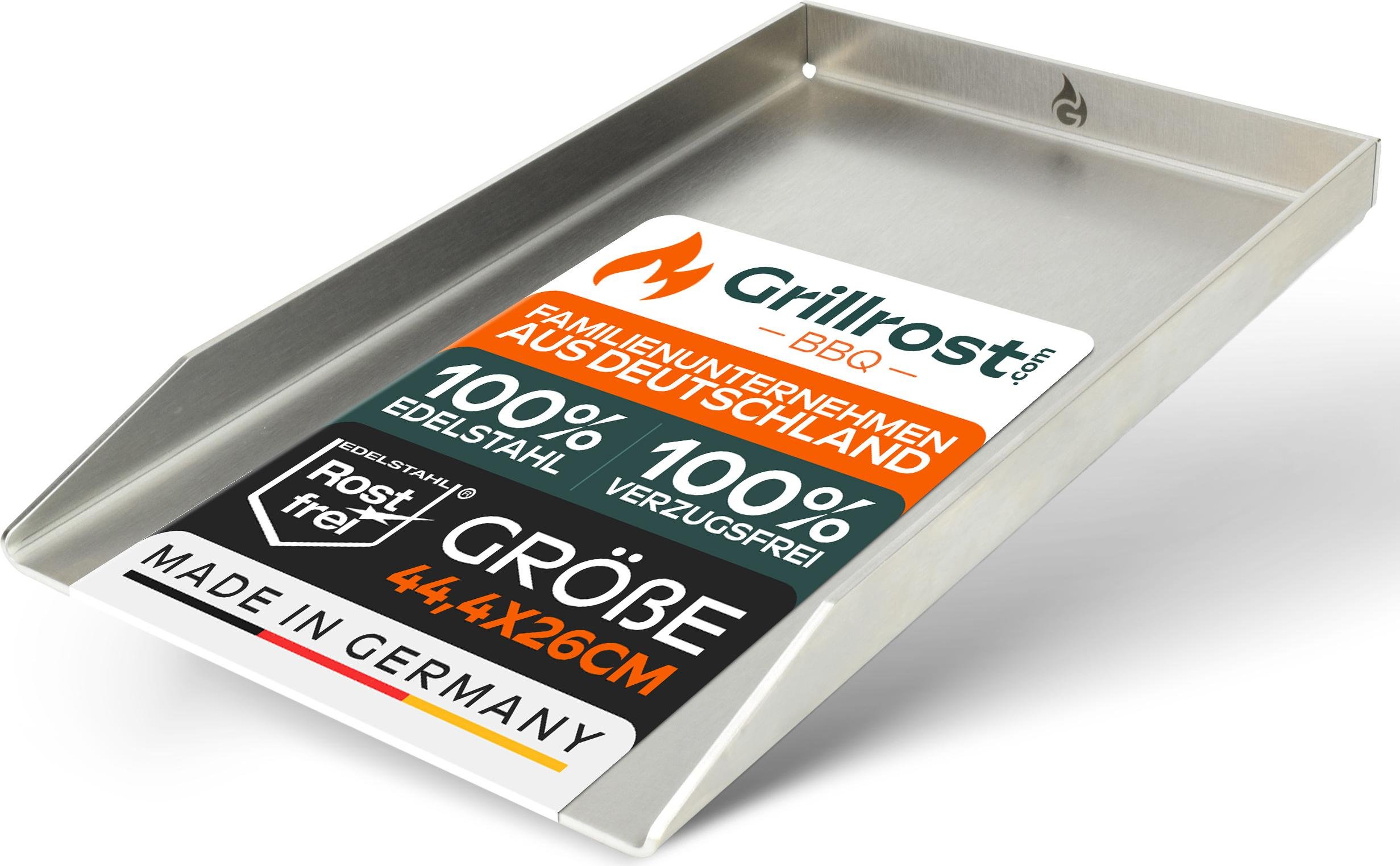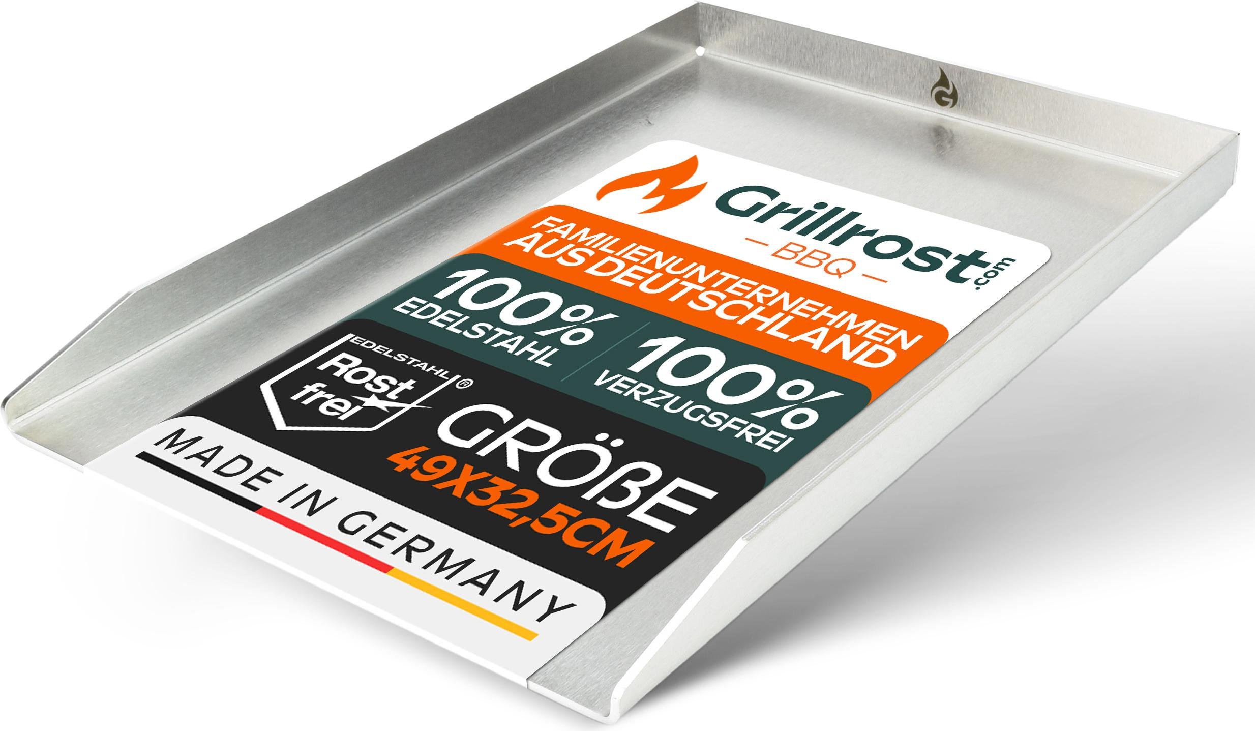 Grillrost.com Das Original Plaque de Cuisson en Acier Inoxydable | Plancha 44,3x26cm - Convient pour Weber Spirit | 4mm Massif