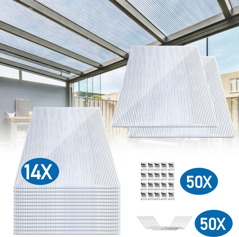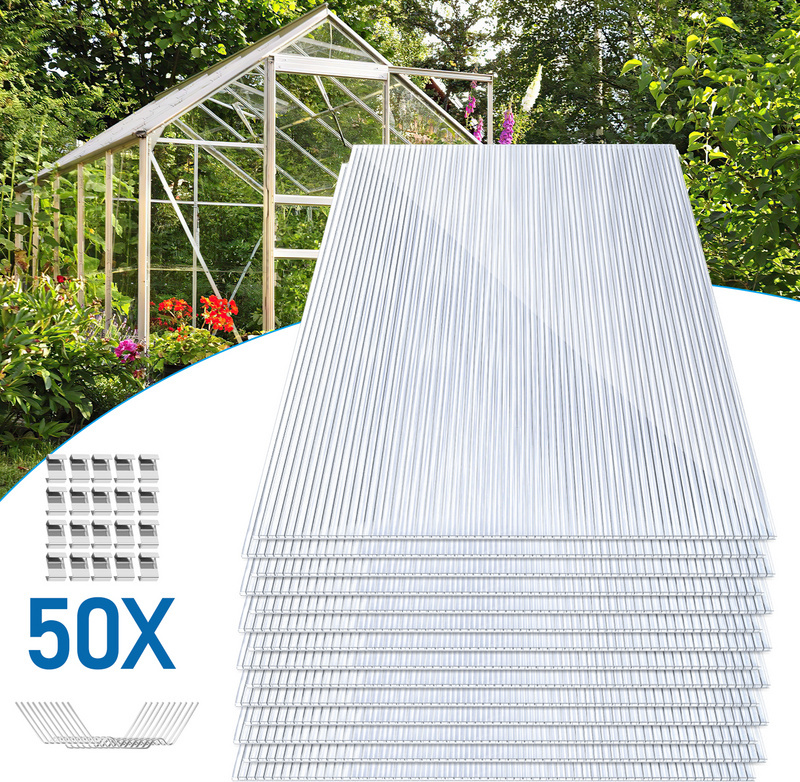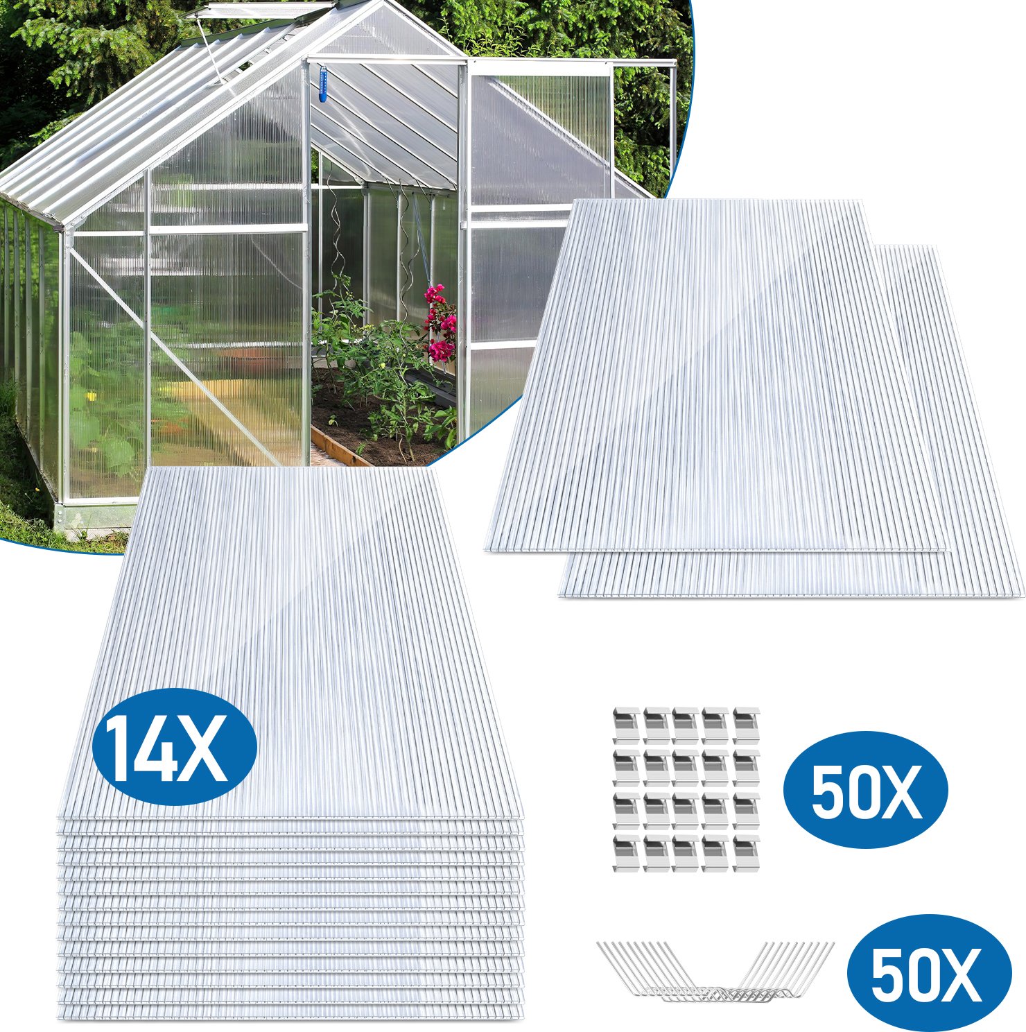 Clanmacy 14x polycarbonate alvéolaire 4mm 50x serre inox 10,25 m² double paroi alvéolaire 1210x605 plaque de serre alvéolaire