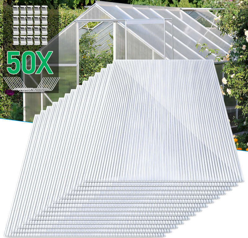 Jopassy 14x polycarbonate alvéolaire 50x serre en acier inoxydable 4mm 10,25 m² plaque double paroi alvéolaire 1210x605 plaque de serre alvéolaire