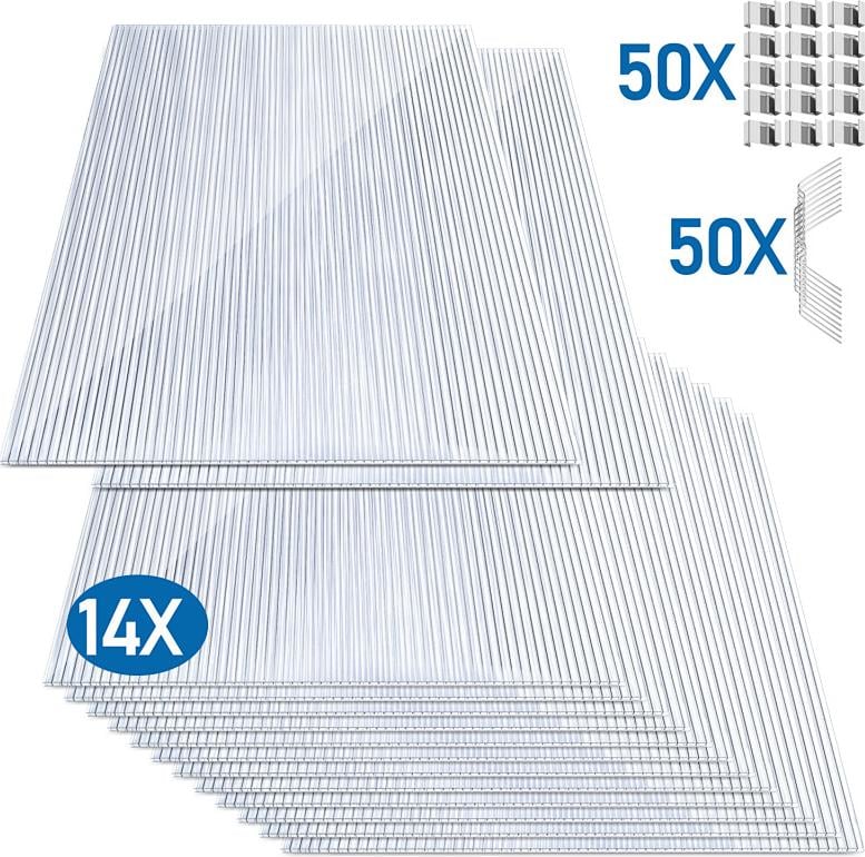 Herrselsam Lot de 14 plaques alvéolaires en Polycarbonate de 60,5 x 121 cm - Double Plaque alvéolaire de 10,25 m² - Plaques en Polycarbonate de 4 mm avec 50 Pinces - 50 Clips Z - Plaque de Serre