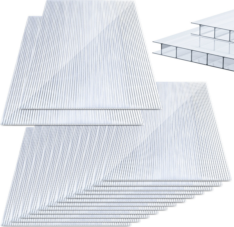 Jiubiaz 14x Polycarbonate alvéolaire double paroi Plaque alvéolaire 4mm 10,25 m²