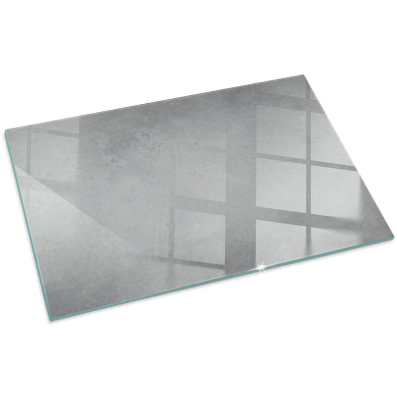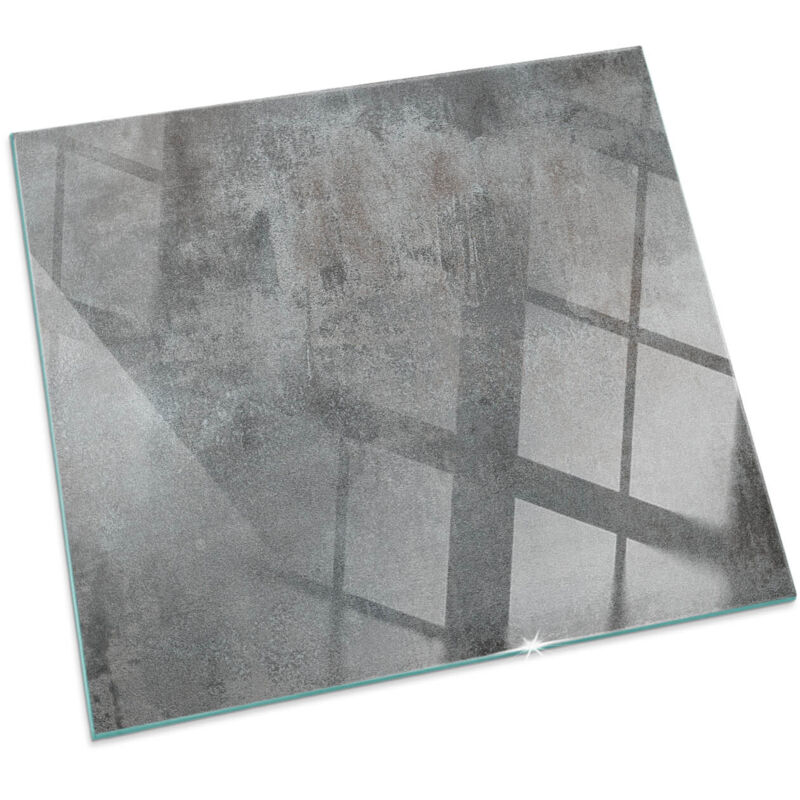 Plaque Rectangulaire de protection de sol en verre trempé pour cheminée ou poêle à bois pare-feu contre les étincelles Texture béton brut 100x70 cm