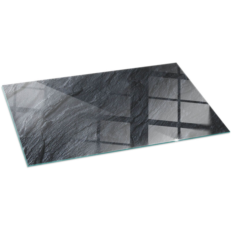 Plaque de protection de sol en verre pour cheminée ou poêle moderne anti-chaleur et étincelles Texture surface pierre 100x50 cm