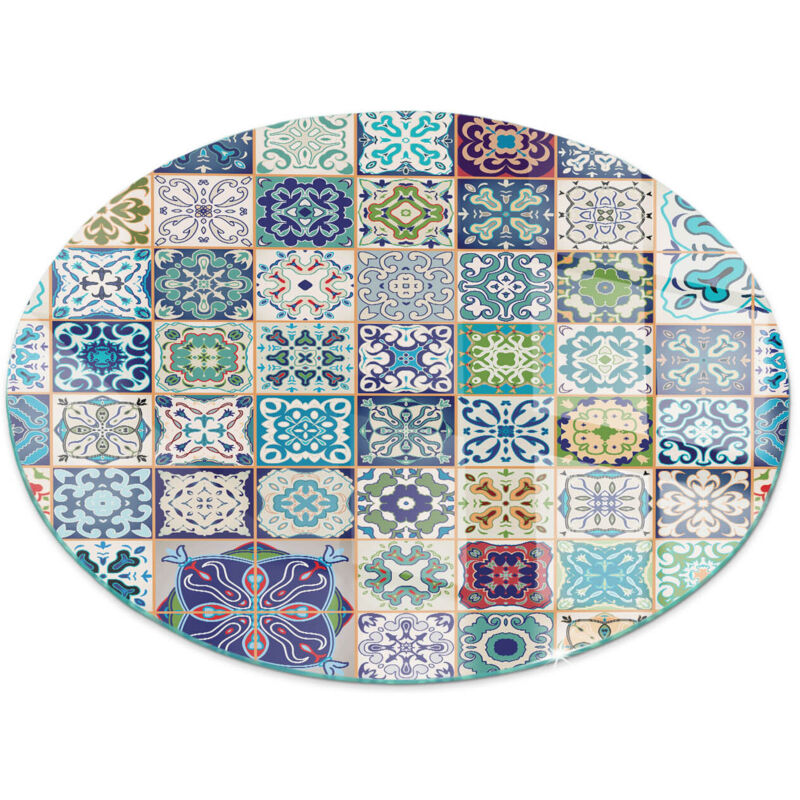 Plaque ronde de protection de sol en verre pour cheminée ou poêle moderne anti-chaleur et étincelles Motifs mosaïques sur carreaux Ronde fi 100 cm