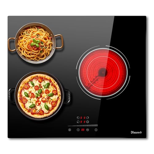 Plaque vitro-céramique Disaenvir 3 feux 5200W, chauffage double anneau, anti-touche, minuterie intelligente, 9 niveaux