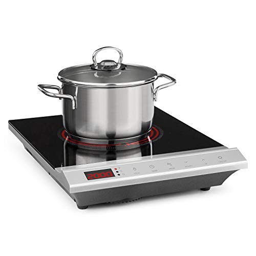 KLARSTEIN Mistercook - Plaque cuisson portable, Plaque de cuisson, vitrocéramique, 2000W, 8 réglages puissance et temp., écran LED, Minuterie, Sécurité enfants, Protection anti-surchauffe - Argent