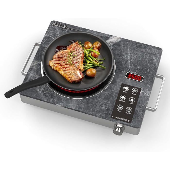Plaque De Cuisson Électrique 1 Feu 3500WPortableVitrocéramiquePour Camping Et ExtérieurPlaque De Cuisson 1 Feu PortableDesign