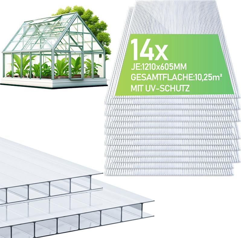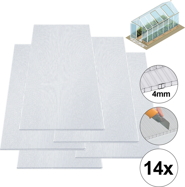 TolleTour 14x Polycarbonate alvéolaire 4mm 10,25 m² Plaques alvéolaires double paroi Plaque de serre