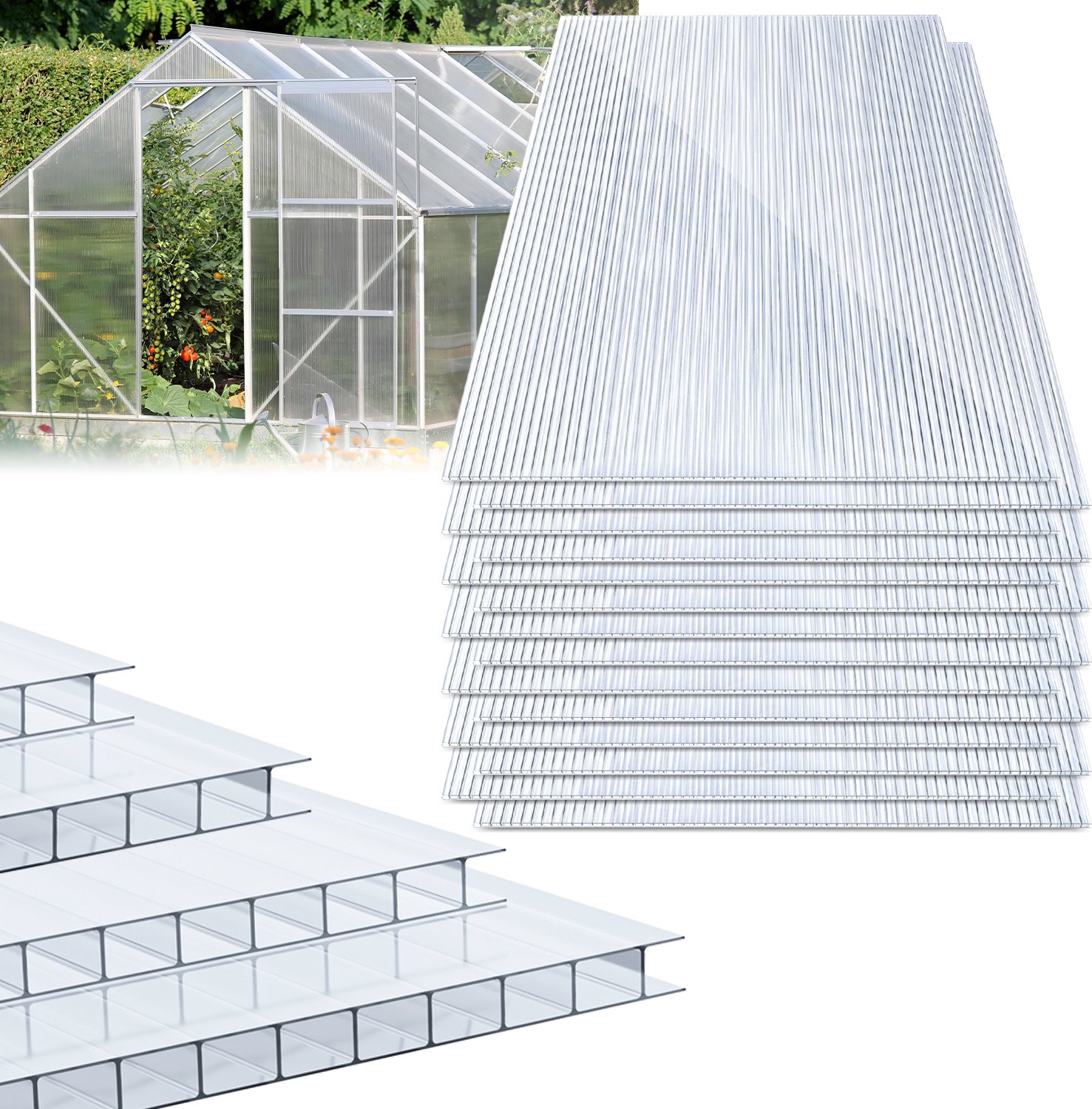 Fiqops 14x Polycarbonate double paroi Plaques alvéolaires 4mm Plaques alvéolaires double paroi Serre