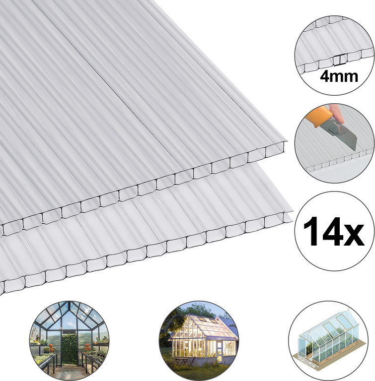Yakimz 14x Polycarbonate double paroi Plaques alvéolaires 4mm Plaques alvéolaires double paroi Serre