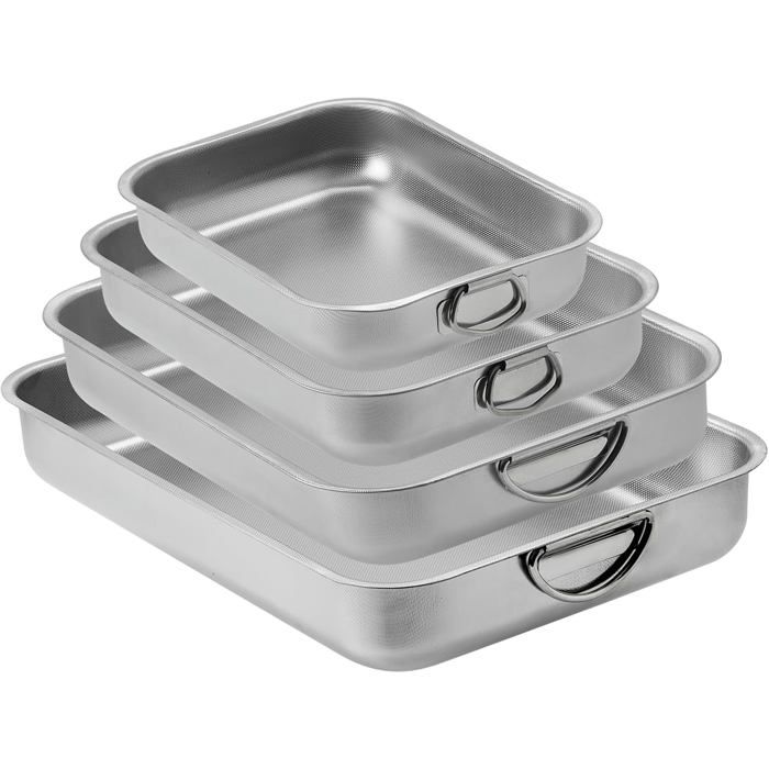 ROSSETTO Set de 4 Tailles Plat à four Inox Rectangulaire avec Poignées Plat de cuisson en Acier Inoxydable Bac de Cuisson en INOX Plat à Lasagne