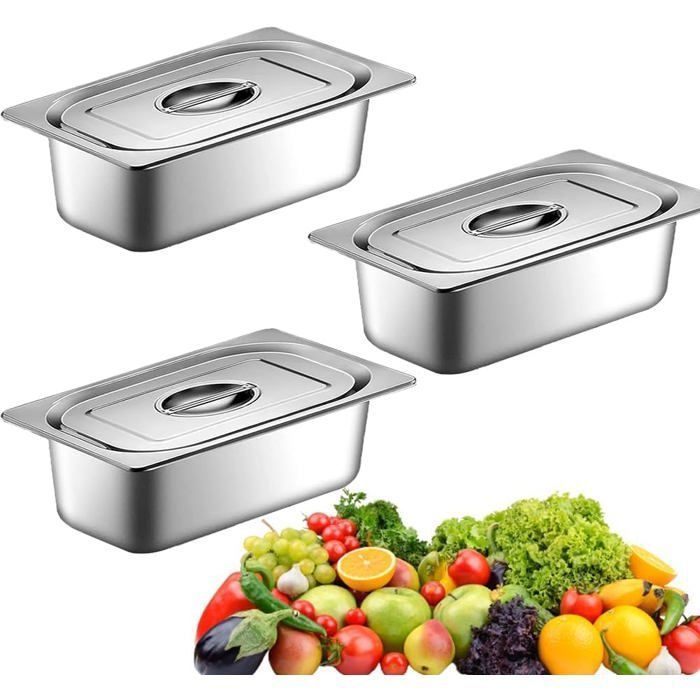 Lot de 3 Bac Inox Alimentaire avec CouvercleBac Gastro Inox Plat Maintien au Chaud Plats à FourRécipients de Conservation au