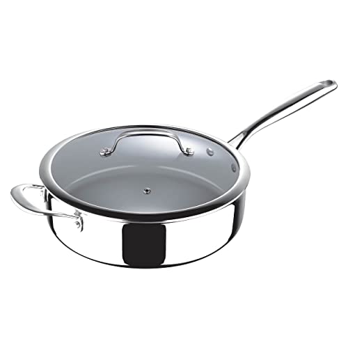 Circulon Steelshield Sauteuse en acier inoxydable avec couvercle 30 cm/4,7 L – Sauteuse à induction avec couvercle hybride anti-adhésif et en verre trempé, passe aux ustensiles en métal, passe au four