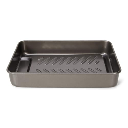 patisse 05670, Plat à Rôtir, Plat à Four rectangulaire très résistant, avec rigole anti-gras, Acier revêtu anti adhésif Carat, 37x26x6cm, Gris anthracite