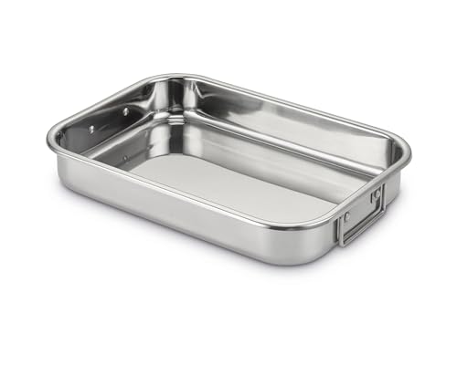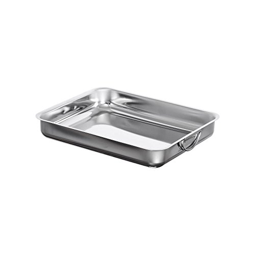 ROSSETTO Plat à four Inox Rectangulaire avec Poignées 35cm x 26cm Plat de cuisson en Acier Inoxydable Bac de Cuisson en INOX Plat à Lasagne