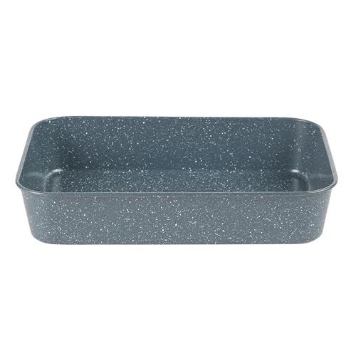 Progress® BW10158EU Metallic Marble Plaque à Rôtir Profond, Plat à Four Rectangulaire en Acier au Carbone, 39 cm, Sans PFOA, Passe au Four Jusqu'à 200°C/Thermostat 6, Pour Viande/Gratin/Legumes, Gris