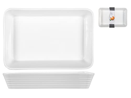 HH Home Plat à Four Rectangulaire, Porcelaine, Blanc, 35x24 cm