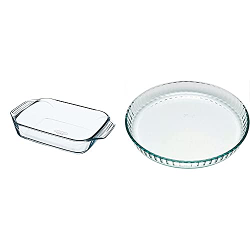 Pyrex - Irresistible - Plat à Four Rectangulaire en Verre, 39 x 25 cm & 1040909 Bake & Enjoy Moule à Tarte en verre Ø 31 cm