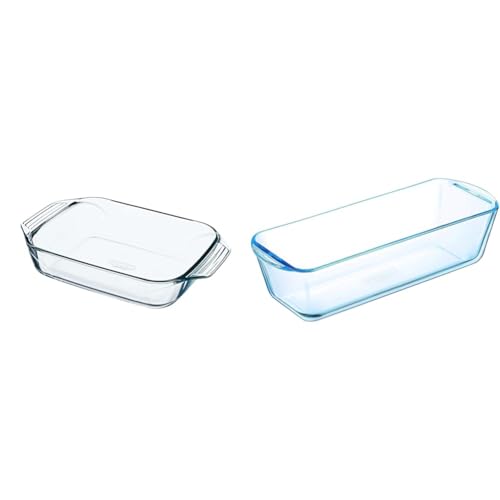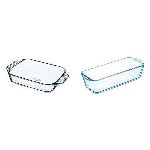 Pyrex - Irresistible - Plat à Four Rectangulaire en Verre, Transparent, 35 x 23 cm & Bake & Enjoy - Moule à Cake en Verre Ecru 28 x 12 x 8 cm