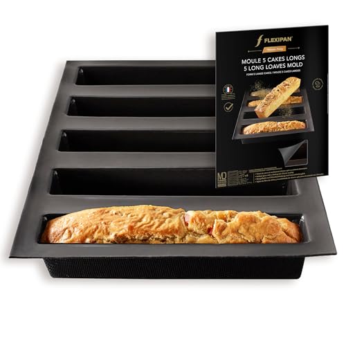 Flexipan Moule 5 Cakes Longs – Démoulage Facile et Rapide - Plat Four Rectangulaire Gateau, Apéritif, Cuisine - Excellence Artisanale, AntiAdhésif, Haute Précision - Fabrication Française