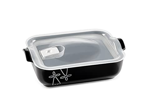 ESPRIT DE CUISINE - Plat À Four Rectangulaire En Céramique - Avec Couvercle Hermétique - Décor Hermine Bretonne - Résistant Aux Rayures - Made In France - 1,3L - 24,6x16,8x6,4cm Extérieur - Noir