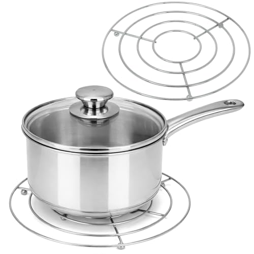 COM-FOUR® 2X sous-Plat en métal - sous-Plat Rond pour casseroles, poêles ou théières - Rangement poele -Ø 20 cm. (2 Stück - silberfarben)