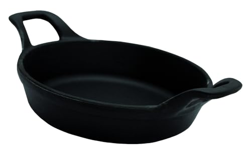 Baumalu, Mini plat à œufs rond, en fonte émaillée, excellente répartition de chaleur, design noir mat élégant, idéal pour œufs, tapas ou portions individuelles, 16 cm, noir