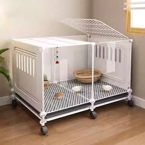 Cage À Poulet Transparente, Cage Caille avec Plateau Coulissant Et Roulette, Poulailler Rutin Clapier À Lapin Portable, Cage À Volaille pour Petits Animaux(White,72 * 47 * 45cm)