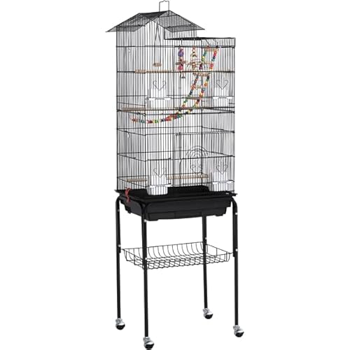 Abician Cage à Oiseaux Décorative en Métal avec Support Détachable à Roulette Cage à Perruche avec Jouets Perchoirs Plateau Coulissant Cage pour Les Petits Oiseaux 158,5 cm Noir