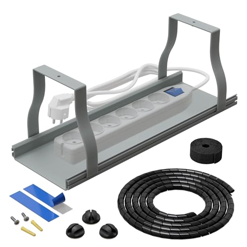D-Line Kit d'organisation des câbles – Plateau sous Bureau avec Enrouleur spiralé, Bande et Clips – Facile à Installer, réduit l'encombrement et Garde l'espace Net