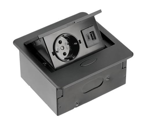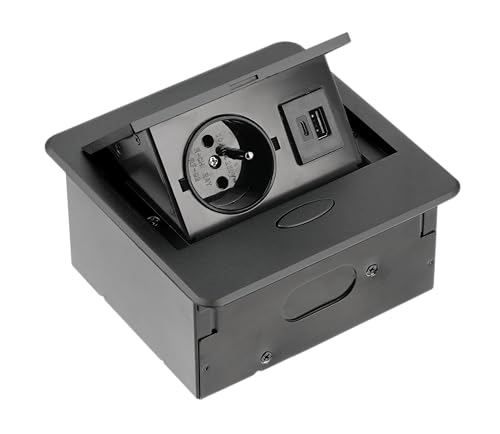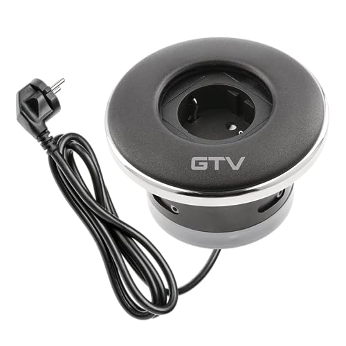 GTV - Prise de meuble SHUTTER, prise encastrable, 1 prise Schuko, avec fermeture pratique, longueur du câble 1,5 m, couleur noire, pour bureau, plateau de table, cuisine et bureau