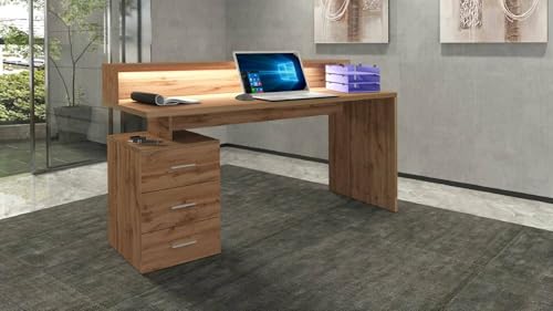 Dmora - Bureau Svevo, Bureau avec Plateau, Bureau Polyvalent, Bureau Multiposition Gain de Place, 160x60h90 cm, Chêne