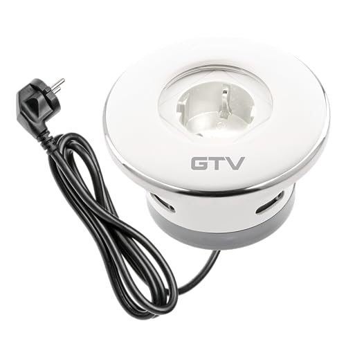 GTV - Prise de meuble SHUTTER, prise encastrable, 1 prise Schuko, avec fermeture pratique, longueur du câble 1,5 m, couleur blanche, pour bureau, plateau de table, cuisine et bureau