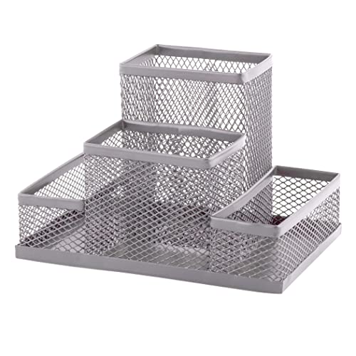 D.RECT Organiseur de bureau | Porte-crayons de bureau Pot à crayons Organisateur de table en métal | Plateau de bureau avec porte-notes en maille | 103 x 154 x 103 mm Argent