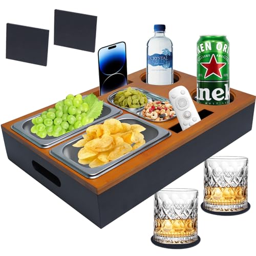 Dazhtu Plateau Canape, Canapé Bar Snack Box, Plateau Repas Canapé avec Bols à Collation en Acier Inoxydable, Couvercle Amovible, l'organisateur de canapé Parfait pour Le Salon, Le canapé,la fête