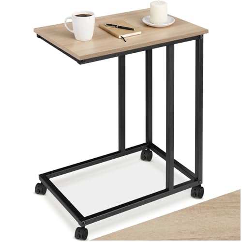 TecTake® Table d'appoint à roulettes Canape Fauteuil Lit, 48 x 35 x 70 cm, Bout de canapé, Plateau Petit Dejeuner, Table Ordinateur Portable, Meuble Salon, Meuble Chambre, Table de Chevet, Bois Clair