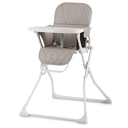 Kinderkraft BINCI chaise haute, légère et pliable, 5 kg, avec plateau, repose-pieds et harnais 5 points, idéale pour petits espaces et voyages, Gris Clair