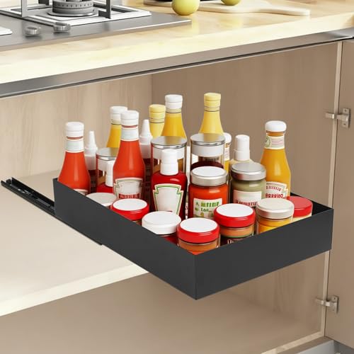 Tiroir Coulissant Cuisine, Etagere Cuisine Tiroir Telescopique Cuisine, Organiseurs De Placards Plateau Coulissant Cuisine, Salon Maison Rangement Organisateur Cuisine, Pas De PerçAge, 35x43x7cm, Noir